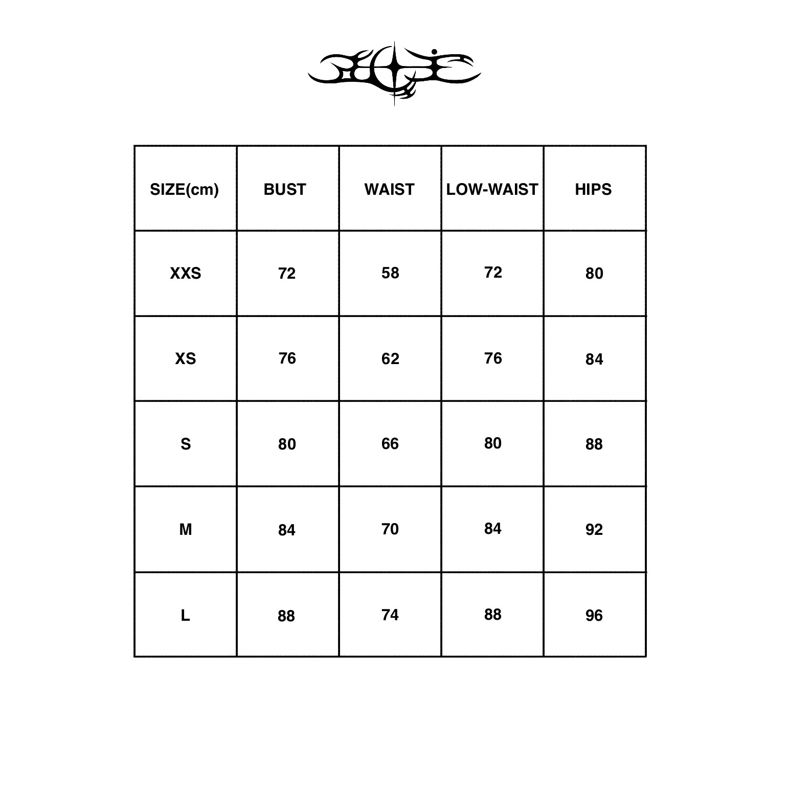 XXS : bust 68-72 / hips 76-80